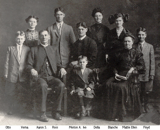m. Aaron S. Whisler Children: Merton, Cora Adell (Della), Maudie (died young from burns), Ross, Blanche, Verna (died soon after marriage), Floyd, Otto, and Ivo. |