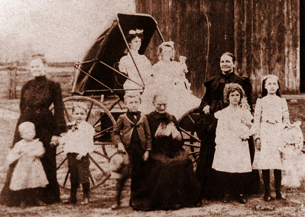 Mattie with her children in Udell, Iowa, Merton to her left. |
