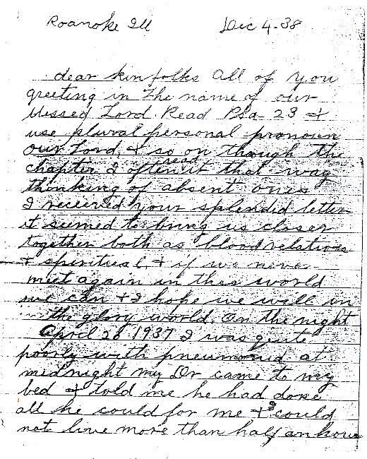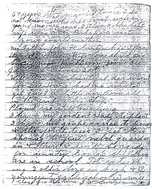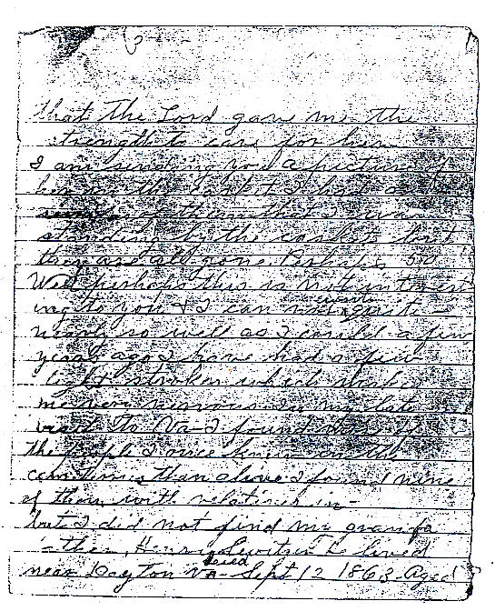 The letter was written to Virginia Keller Rhodes, Grandaughter of his Uncle Daniel Switzer